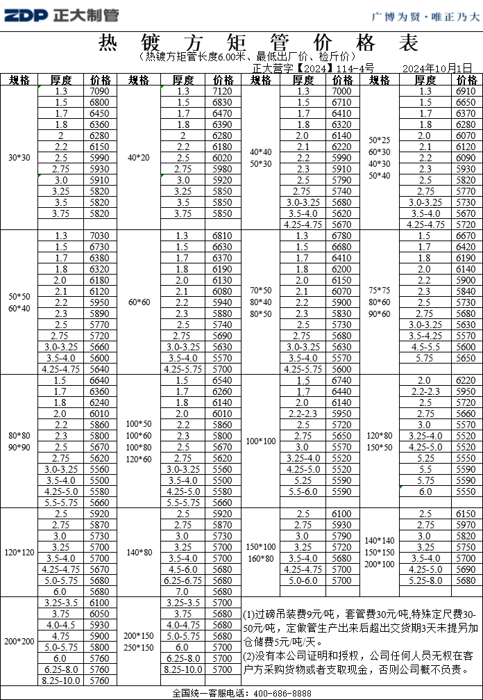 Hot Dipped Galvanized Hollow Section Price